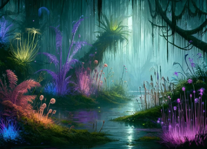 Flora and Fauna: The plant life in the Black Marsh is as resilient as it is strange. Towering reeds and dense mangroves dominate, interspersed with carnivorous plants and fungi that thrive in the low light and moist conditions. The fauna is equally adapted to this harsh environment, including venomous insects, large amphibians, and predatory birds that glide silently above the water. The most remarkable inhabitants are the massive serpent-like creatures that lurk in the deeper waters, feared by all who know of them.
