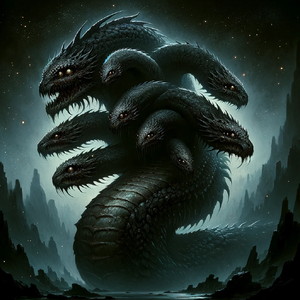In the deepest, most shadowed part of the Black Marsh, there resides a monstrous entity known as Gloomfang. This creature is a massive, ancient Sable Hydra with thick, blackened scales and eyes that glimmer with a malevolent intelligence. The hydra has adapted over centuries to the marsh's oppressive environment, and its many heads allow it to be aware of every movement within its domain.